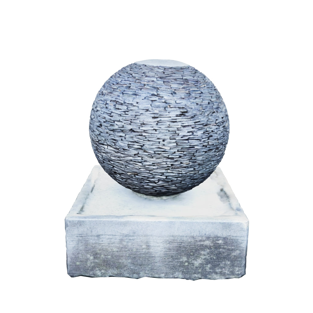 Sphere Fountain: Water flows gracefully from the top of the sphere and back to the concrete base.